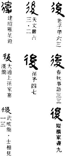 (二)当作“從”cóng,草写形近讹。 自後你去了,乱了一夜,到如今谁尝甚么儿来!(六二26上7)只见孟玉楼後后慢慢的走将来。(七二3上8)