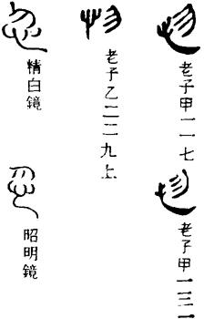 从上到下依次是小篆、甲骨文、金文、古玺及战国文字、缪篆及汉代文字、鸟虫篆。