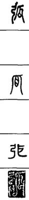 从上到下依次是小篆、甲骨文、金文、古玺及战国文字、缪篆及汉代文字、鸟虫篆。