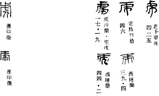 〔缺笔〕《金石文字记》卷五云:唐国子学石经,今在西安府儒学。“凡经中‘虎’字皆缺末笔作‘虎’、‘虓’、‘號’‘虩’、‘饕’、‘滮’、‘篪’、‘褫’字皆同,避太祖讳。”