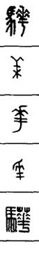 从上到下依次是小篆、甲骨文、金文、古玺及战国文字、缪篆及汉代文字、鸟虫篆。