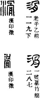 从上到下依次是小篆、甲骨文、金文、古玺及战国文字、缪篆及汉代文字、鸟虫篆。
