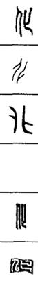 从上到下依次是小篆、甲骨文、金文、古玺及战国文字、缪篆及汉代文字、鸟虫篆。