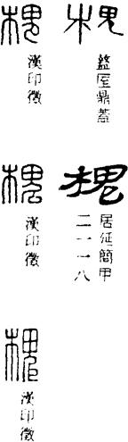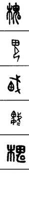 从上到下依次是小篆、甲骨文、金文、古玺及战国文字、缪篆及汉代文字、鸟虫篆。