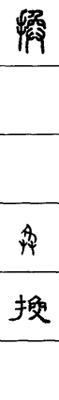 从上到下依次是小篆、甲骨文、金文、古玺及战国文字、缪篆及汉代文字、鸟虫篆。
