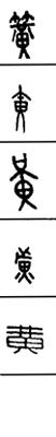 从上到下依次是小篆、甲骨文、金文、古玺及战国文字、缪篆及汉代文字、鸟虫篆。