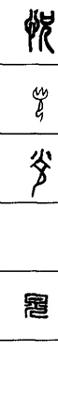 从上到下依次是小篆、甲骨文、金文、古玺及战国文字、缪篆及汉代文字、鸟虫篆。