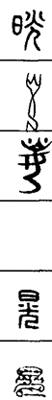 从上到下依次是小篆、甲骨文、金文、古玺及战国文字、缪篆及汉代文字、鸟虫篆。