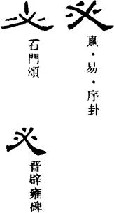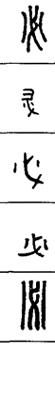 从上到下依次是小篆、甲骨文、金文、古玺及战国文字、缪篆及汉代文字、鸟虫篆。