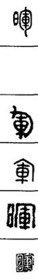 从上到下依次是小篆、甲骨文、金文、古玺及战国文字、缪篆及汉代文字、鸟虫篆。