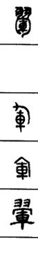 从上到下依次是小篆、甲骨文、金文、古玺及战国文字、缪篆及汉代文字、鸟虫篆。