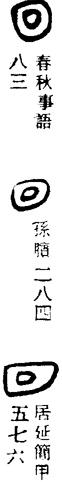 从上到下依次是小篆、甲骨文、金文、古玺及战国文字、缪篆及汉代文字、鸟虫篆。