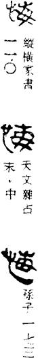从上到下依次是小篆、甲骨文、金文、古玺及战国文字、缪篆及汉代文字、鸟虫篆。
