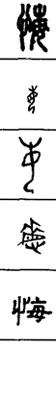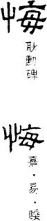 ①悔恨,后悔。《论语·为政》:“慎行有馀,则寡悔。”《淮南子·氾论》:“桀囚于焦门,而不能自非其所行,而悔不杀汤于夏台。”引申为悔改。《后汉书·鲁恭传》:“亭长乃惭悔,还牛。”②灾祸。《公羊传·襄公二十九年》:“天苟有吴国,尚速有悔于予身。”③《周易》的外卦,即六爻的上三爻。