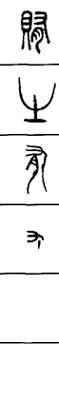 从上到下依次是小篆、甲骨文、金文、古玺及战国文字、缪篆及汉代文字、鸟虫篆。