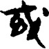 “国(國) 和“域”的本字。《说文》:“或,邦也。域,或又从土。”段注:“邦者,國也。盖或、國在周时为古今字。”后借用于表”有的”、“有人”等义。