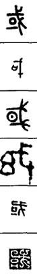 〈辨〉或字甲骨文从戈从口,象示以武力守卫城邑,为域或国的初文。□读wéi,象示城邑。甲骨文常误作口。金文□的四周各加一画,表示四面围守,后省为下面一画。篆书同于金文的简化形式,楷书作或。或字又借用为虚词字,于是又加□为國表示本义、加土为域表示地域。