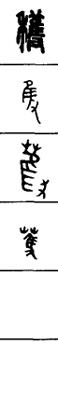 从上到下依次是小篆、甲骨文、金文、古玺及战国文字、缪篆及汉代文字、鸟虫篆。