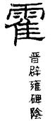 huò 《广韵》:挥霍。尔雅曰,霍山为南岳,又姓。 虚郭切 宕合一入铎晓