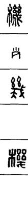 从上到下依次是小篆、甲骨文、金文、古玺及战国文字、缪篆及汉代文字、鸟虫篆。