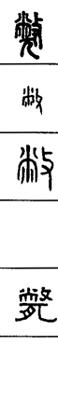从上到下依次是小篆、甲骨文、金文、古玺及战国文字、缪篆及汉代文字、鸟虫篆。