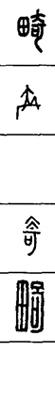 从上到下依次是小篆、甲骨文、金文、古玺及战国文字、缪篆及汉代文字、鸟虫篆。