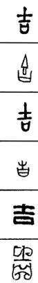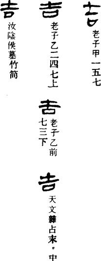 〈辨〉吉字甲金文皆象置兵器于函中之形,有兵器而不用,自是幸事。篆书讹变为吉,从士从口,以士人所说即为善言为解,也通。又,吉字上从士,多有写作土者,不对。
