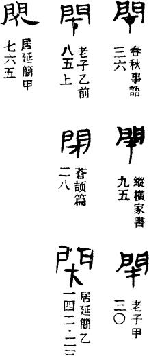 闭字的本义为关门。金文的闭字,从门,门中的“十”字形,象用来关门的键锁之形;篆书误“十”为“才”,故《说文解字》云:“闭,阖门也。从门,才所以歫门也。”此外,闭还专指闩门的孔,也指锁筒(或锁套)。而由关门之义,更引申为关闭、壅塞、阻绝等义。