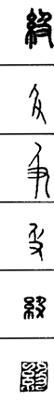 从上到下依次是小篆、甲骨文、金文、古玺及战国文字、缪篆及汉代文字、鸟虫篆。
