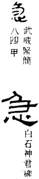 〈辨〉急字篆书从心及声;楷书作急,形体稍有讹变。