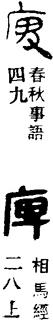 馬王堆帛書《春秋事語·晉獻公欲襲虢章》:“……且少長於君前,其埶(勢)有(又)庳。”“夫晉之使者敝(幣)重而辭庳……”《穀梁傳》作:“宫之奇諫曰:‘晉國之使者,其辭卑而幣重,必不便於虞。’”銀雀山簡《堯與善卷許由》:“許