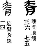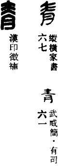 从上到下依次是小篆、甲骨文、金文、古玺及战国文字、缪篆及汉代文字、鸟虫篆。