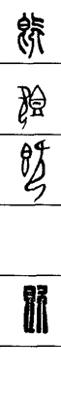 从上到下依次是小篆、甲骨文、金文、古玺及战国文字、缪篆及汉代文字、鸟虫篆。