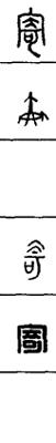 从上到下依次是小篆、甲骨文、金文、古玺及战国文字、缪篆及汉代文字、鸟虫篆。