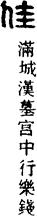 从上到下依次是小篆、甲骨文、金文、古玺及战国文字、缪篆及汉代文字、鸟虫篆。