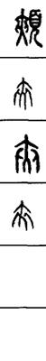 从上到下依次是小篆、甲骨文、金文、古玺及战国文字、缪篆及汉代文字、鸟虫篆。