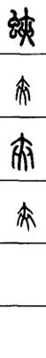 从上到下依次是小篆、甲骨文、金文、古玺及战国文字、缪篆及汉代文字、鸟虫篆。