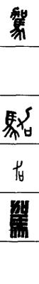从上到下依次是小篆、甲骨文、金文、古玺及战国文字、缪篆及汉代文字、鸟虫篆。
