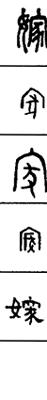从上到下依次是小篆、甲骨文、金文、古玺及战国文字、缪篆及汉代文字、鸟虫篆。