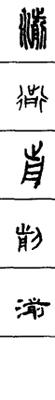 从上到下依次是小篆、甲骨文、金文、古玺及战国文字、缪篆及汉代文字、鸟虫篆。