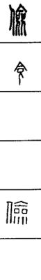 从上到下依次是小篆、甲骨文、金文、古玺及战国文字、缪篆及汉代文字、鸟虫篆。