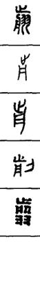 从上到下依次是小篆、甲骨文、金文、古玺及战国文字、缪篆及汉代文字、鸟虫篆。