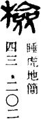 jiǎn 《广韵》:书检、印窠、封题也。又检校。 居奄切 咸开三上琰见
