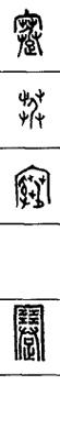 从上到下依次是小篆、甲骨文、金文、古玺及战国文字、缪篆及汉代文字、鸟虫篆。