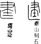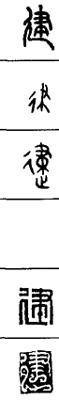 从上到下依次是小篆、甲骨文、金文、古玺及战国文字、缪篆及汉代文字、鸟虫篆。