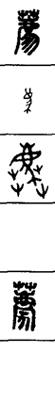 从上到下依次是小篆、甲骨文、金文、古玺及战国文字、缪篆及汉代文字、鸟虫篆。