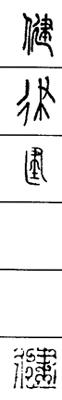 从上到下依次是小篆、甲骨文、金文、古玺及战国文字、缪篆及汉代文字、鸟虫篆。