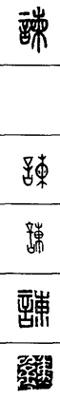 从上到下依次是小篆、甲骨文、金文、古玺及战国文字、缪篆及汉代文字、鸟虫篆。