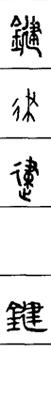 ①车辖,车轴两端管住车轮不使脱落的装置。《尸子·文轩六駃》:“题无四寸之键,则车不行。”(题:这里指车轴顶端。)②门闩。《淮南子·主术》:“五寸之键,制开阖之门。”又为闩门。《晋书·陶侃传》:“至使西门不键。”③锁簧。锁可以插入和拔出的部分。《周礼·地官·司门》:“司门掌授管键,以启闭国门。”(管:这里指钥匙。)《礼记·月令》:“修键闭。”又为钥匙。郭璞《尔雅序》:“六艺之钤键。”(钤:锁。)