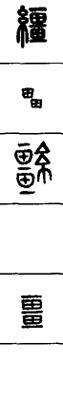 从上到下依次是小篆、甲骨文、金文、古玺及战国文字、缪篆及汉代文字、鸟虫篆。
